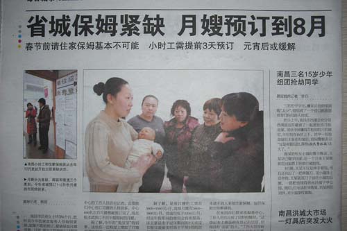 “我們這里的月嫂都已經(jīng)預(yù)訂到8月份了。”南昌市婦聯(lián)家政服務(wù)中心的工作人員告訴記者,近期她們中心預(yù)訂月嫂的人特別多,中心600名左右月嫂都被預(yù)訂完了,現(xiàn)在根本就預(yù)訂不到年假期間的月嫂。